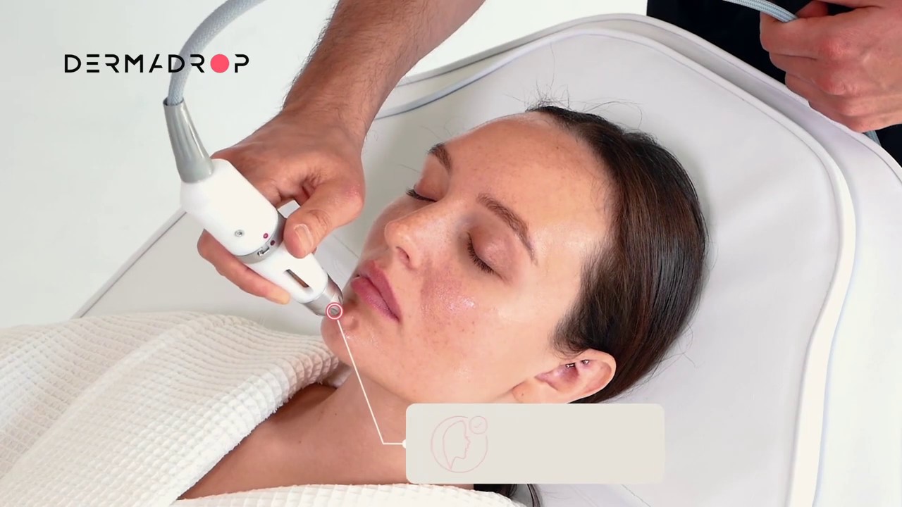 Процедура на аппарате Dermadrop позволяет, не нарушая целостности кожных покровов, влиять на процессы, связанные со старением, увлажнением, питанием, запуском регенераторных процессов кожи, а также работать с проблемной кожей, склонной к образованию акне. Основное преимущество данной процедуры в том, что она позволяет вводить коктейли, сыворотки и другие препараты БЕЗ ИГЛ.