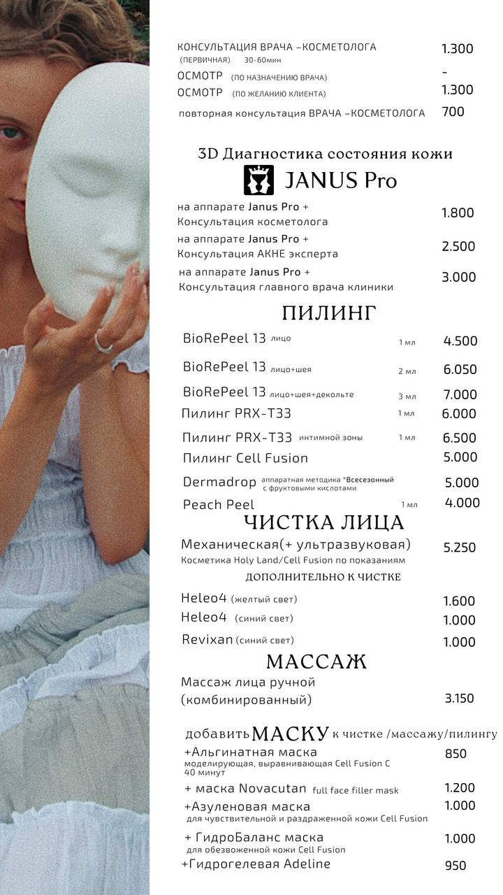 Прейскурант на услуги клиники